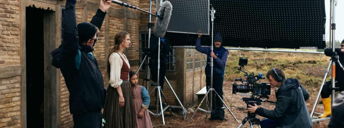 På storfilm som Bastarden er settet fyldt med tonemestre, fotografer og andre filmarbejdere.