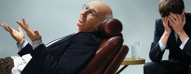 Så er der os andre, som knuselsker den gale særling Larry David, når han dissekerer hverdagens talrige irritationsmomenter. I serien trynes dem, der har solbriller på indenfor, dem der taler højt i telefon i det offentlige rum og perifere bekendtskaber, som uddeler overihærdige krammere.