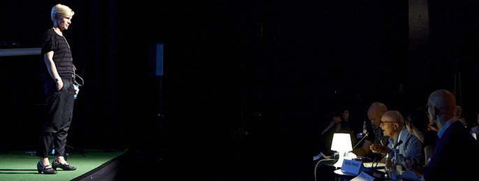På scenen i Odense skal otte udvalgte filmfolk på fem minutter overbevise en jury om, at de har verdens bedste kortfilm i maven.