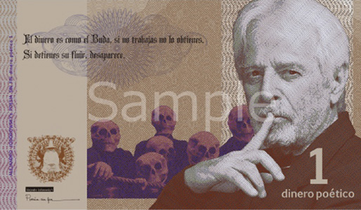Derfor er Poetic Money også udformet som traditionelle pengesedler, men prydet med Jodorowskys ansigt og et lille digt skrevet af instruktøren.