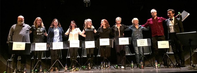 Men var der en større, kønspolitisk dagsorden med arrangementet, forsvandt den på aftenen i Nørrebro Teater. Også selv om Anne Sofie Espersen, der gav den med tyk accent i rollen som skurken Færingen, trådte på scenen iført en t-shirt med teksten ”Sut min klit” – en henvisning til rapperen Nikolines sang af samme navn.