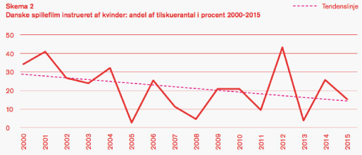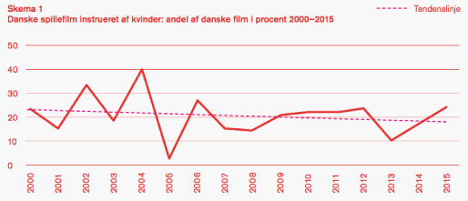 Skema 1 (se nederst i artiklen) viser en stigning i perioden 2000-2004 med en kulmination i 2004, hvor kvindelige instruktører stod bag 40 procent af spillefilmene. Hvis stigningen var fortsat, ville der have været ligevægt mellem kønnene i 2008, men luften gik af ballonen.
