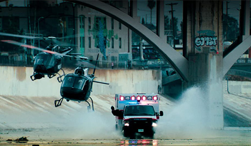 Action-mesteren Michael Bay har i sin udgave af filmen skruet gevaldigt op for den vilde biljagt, som i Ambulance også inkluderer flere helikoptere (foto: Universal Studios).