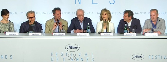 Efter pressevisningen af filmen, der har Michael Caine og Harvey Keitel i hovedrollerne som aldrende levemænd, blev der vanen tro holdt et pressemøde, hvor Sorrentino og skuespillerne talte om arbejdet med den.