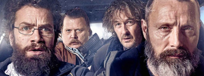 Mads Mikkelsen (th.) og hans venner ser bekymret ud i Retfærdighedens ryttere, og det er der god grund til efter regeringens beslutning om at lægge moms på kunstnernes rettigheder.
