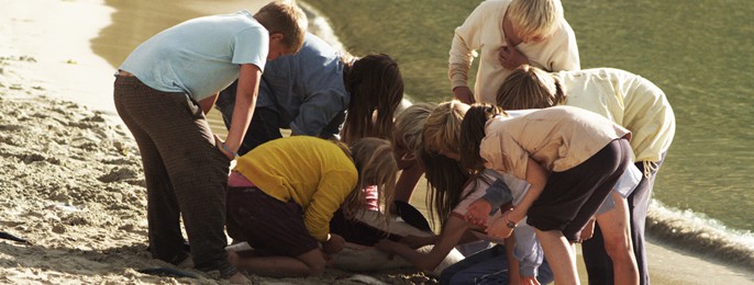 En doven sommerdag finder en gruppe børn et dødt dyr i vandkanten ved stranden. Impulsivt går børnene i gang med at skære det i stykker, helt opslugt af blodet og de indvolde, de finder inde i dyret.