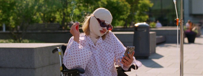 Snart har hun hele hovedet pakket ind i bandage, mens hendes kæreste både er irriteret og bekymret. I en meget morsom scene har de sex, mens hun er iført bandagen og får orgasme til fantasien om, at folk græder ved hendes begravelse.