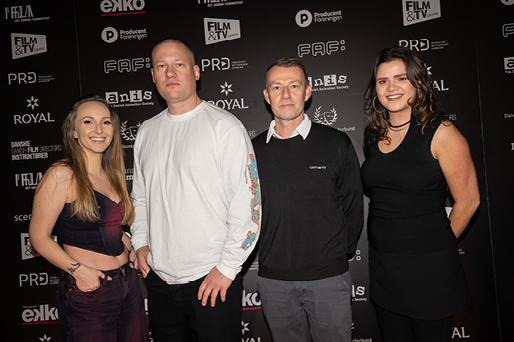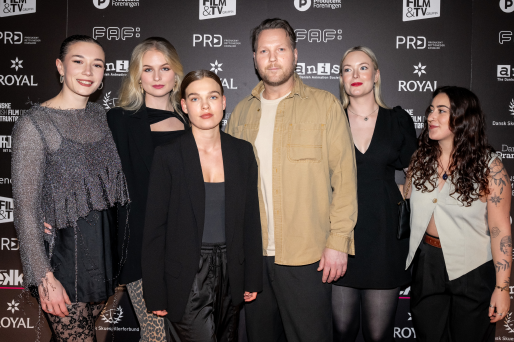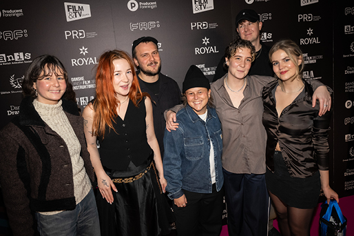 Instruktøren Amalie Maria Nielsen (nr. to fra højre) vandt prisen for bedste fiktion med ungdomsdramaet Sværddrage, mens producer Anna Lind (yderst til højre) hentede prisen for bedste klipning på vegne af Laura Andrea Friis-Rasmussen. Fotografen Lina Elvekjær Biehl (nr. to fra venstre) og hovedrolleindehaveren Anna Charlie Zerbib Streitz (i midten) var også nomineret.
