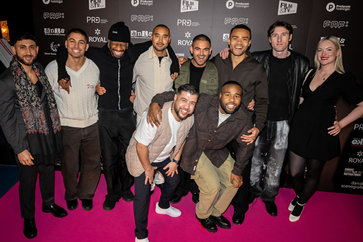 Skuespillerne Arian Kashef (yderst tv.) og Wahid Sui Mahmoud (forrest tv.) uddelte prisen for bedste manuskript og fulgtes med et hold, der blandt andet talte den nominerede skuespiller Yas Wadi (nr. fire fra højre) og kollegaen Christopher Nallo (forrest, th.), der spiller med i flere film på Ekko Shortlist.