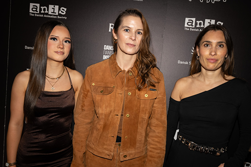 Den kendte, svenske skuespiller Lisa Carlehed (i midten) var nomineret til prisen for bedste kvindelige skuespiller med sorgdramaet Hjemfærd og mødte velklædt op med to ledsagere.