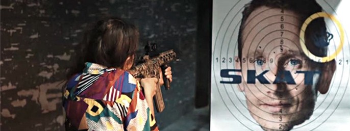 I hans øjne er der ingen symbolik at spore, når hun med pistol og riffel skyder på billeder af en lang af de mest indflydelsesrige politikere, der ifølge Nikoline har ansvaret for SKAT’s EFI-skandale, salget af DONG og økonomisk hjælp til banker, der hvidvasker penge for deres kunder: