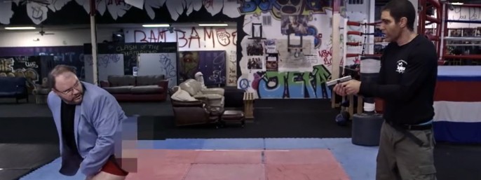 Spencer råber også ”Nigger! Nigger!” flere gange, og på opfordringen fra Erran Morad viser han sin bare numse og jagter obersten, der under øvelsen spiller en jihadist.