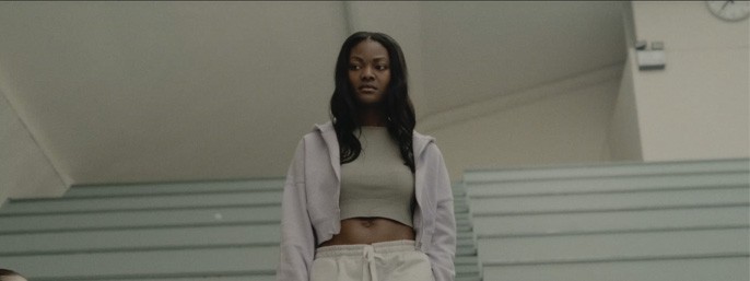 Dansende og med lukkede øjne drømmer en ung kvinde sig væk til et andet sted. Hun åbner øjnene til områdets seje slæng, der midt i håndboldhallen kigger på hende, som var hun fra en anden planet.