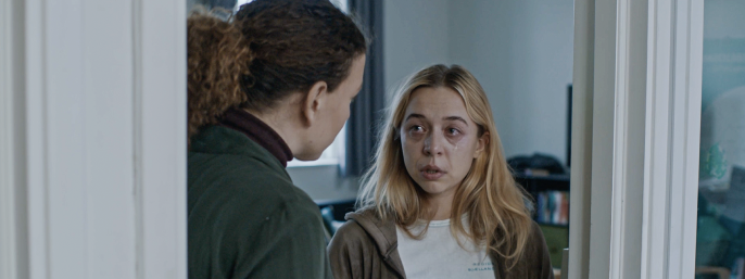 Carla Eleonora Feigenberg har rollen som bundulykkelig patient i Selma Sunnivas vinderfilm Et eksempel: Dem på gulvet.