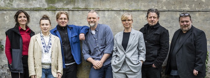 Instruktør Mikkel Serup (midt) samler fremadstormende talenter og etablerede skuespillere foran kameraet i den kommende politiske thriller Mørkeland.