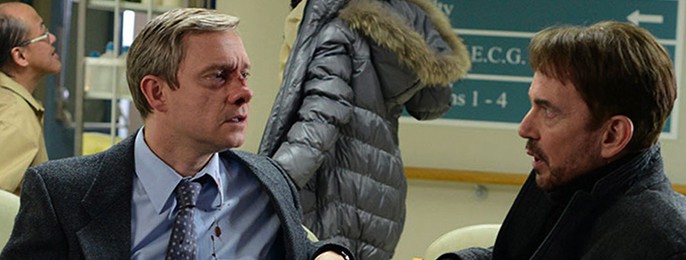 Martin Freeman er Lester Nygaard, som terroriseres af Billy Bob Thorntons Lorne Malvo i den nye serie Fargo. Serien er baseret på Coen-brødrenes film af samme navn.