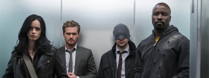 Senest Netflix-serien The Defenders, som samler heltene Jessica Jones, Luke Cage, Iron Fist og Daredevil fra deres respektive serier.