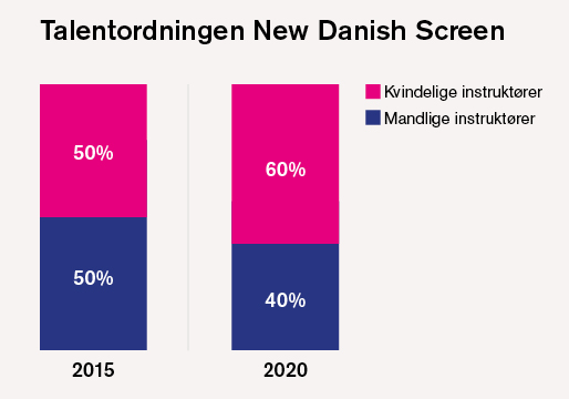 På talentordningen New Danish Screen, hvor instruktører i dag typisk får deres debut, er der med forholdet 60/40 procent flere kvinder end mænd, som i 2020 fik produktionsstøtte til deres film.