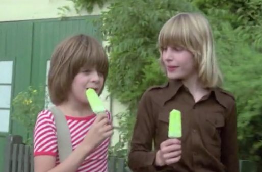 En trettenårig Anders Lund Madsen (tv.) har en lille rolle i Du er ikke alene, hvor han spiser is og har en interessant replik (foto: Henrik Herbert).