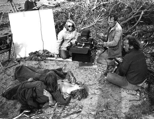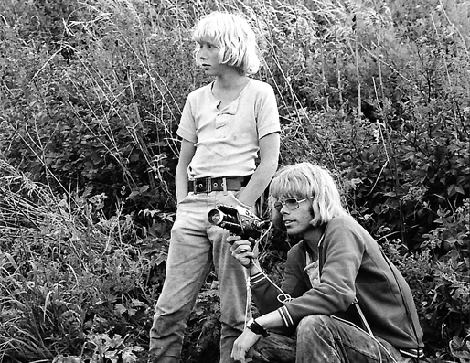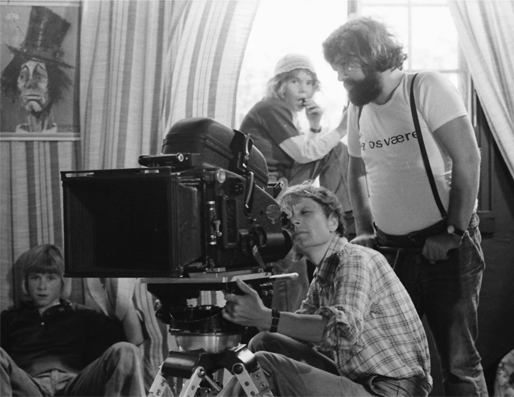 Under optagelser af La’ os være (1975) tog Lasse Nielsen sig primært af billederne, mens Ernst Johansen yderst til højre instruerede de unge (foto: Andreas Fischer-Hansen).