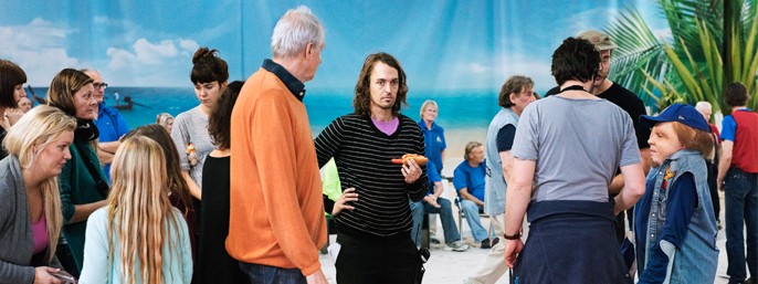 ”På den måde vil jeg gerne vise de forskellige hierarkier for normalitet,” forklarer Nyholm.”Tag for eksempel chefen af petanque-holdet. Han er boss dér. Men når petanque-spillerne kommer til den store, skandinaviske turnering, bliver de totalt ydmyget af beachvolley-spillerne.”