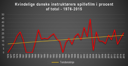 Også når det gælder den procentuelle udvikling er tendensen ligeledes krystalklar. Større og større andel af filmene bliver instrueret af kvinder.