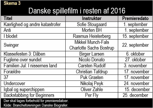 Skema 3 byder på en fuldstændig liste over danske film i den sidste halvdel af 2016.