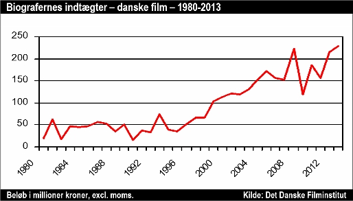 2013 satte rekord, aldrig nogensinde tidligere har biograferne bidraget med så mange penge til dansk films økonomi.
