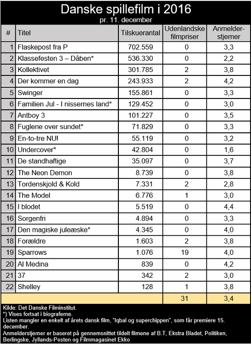 I nedenstående skema kan årets danske filmhøst iagttages.