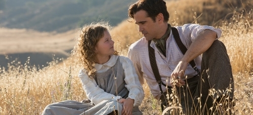 P.L. Travers (Annie Rose Buckley) i flashback til barndommen med faren, Travers Goff (Colin Farrell). Den unge forfatter tog farens fornavn som kunstnernavn.