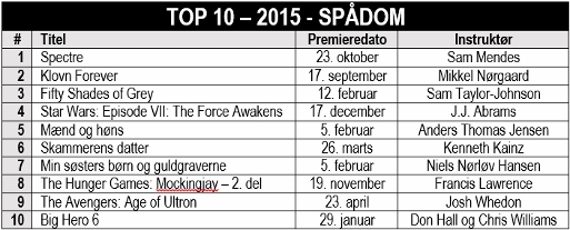 For et års tid siden fremkom jeg med en spådom om de ti bedst sælgende biograffilm i 2015. Den spådom kom kun delvis til at holde stik. Eller som Storm P. engang sagde: Det er svært at spå – især om fremtiden.