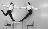 Et bord, to personer, ingen tyngdekraft.