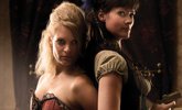 En ung kvinde er bagbundet, mens en anden kvinde hvisker hende i øret.